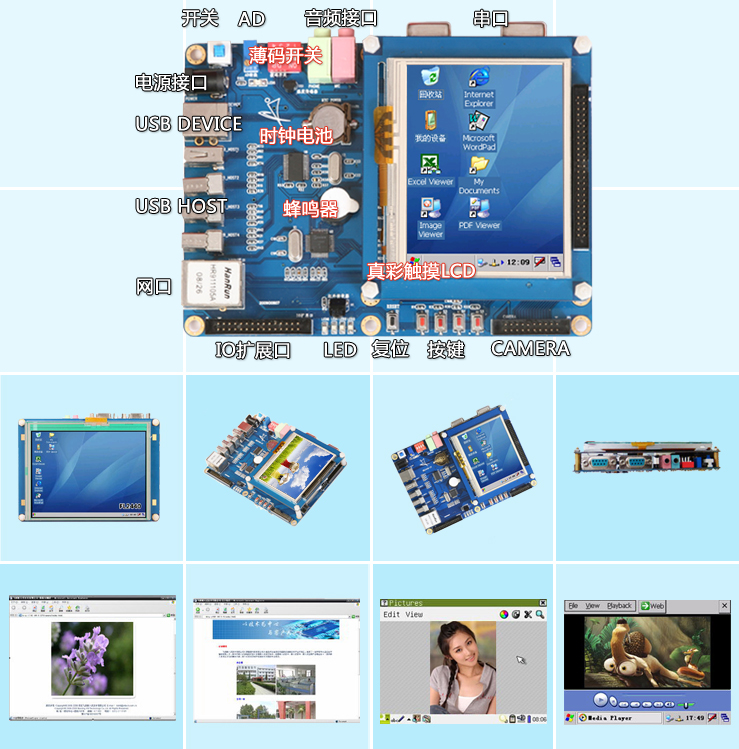 • 备注:独有的硬件选择启动系统方案:开发板为Linux和Wince双系统,可直接通过拨码开关进行硬件选择启动的操作系统。这样操作更加方便,也可使初学者朋友深入掌握硬件切换操作系统的方法。